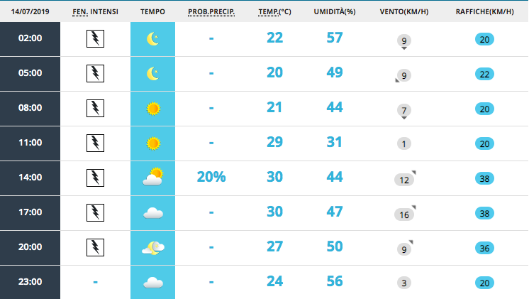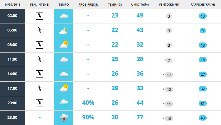 Le previsioni meteo per domani, domenica 14 luglio