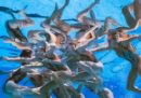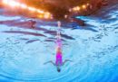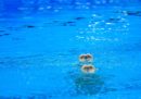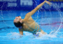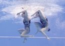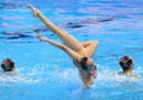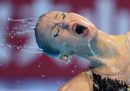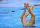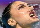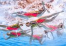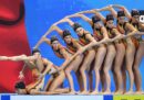 In questi giorni sono in corso a Gwangju, in Corea del Sud, i Campionati mondiali di nuoto, che dureranno fino al 28 luglio e comprendono diverse discipline: tuffi, nuoto in vasca, nuoto in acque libere, pallanuoto e nuoto artistico (o sincronizzato). Da quest’ultimo arrivano fotografie nelle quali le atlete (non esiste la disciplina maschile a livello internazionale, da pochi anni è ammesso il duo misto) spiccano per la loro incredibile abilità, ma anche per le espressioni esagerate e a volte spaventose, i giochi di riflessi in acqua, posizioni che sembrano impossibili da replicare o anche solo da capire, con quegli intrecci di gambe e ammassi di corpi sopra e sott’acqua.