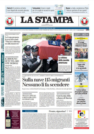 Le prime pagine di martedì 30 luglio 2019
