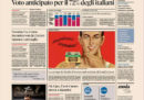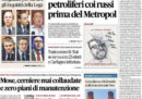 Ci sono notizie diverse in apertura sui giornali di oggi: il Corriere della Sera intervista il leader della Lega Salvini sui rapporti con il Movimento 5 Stelle, il Manifesto, Avvenire, il Mattino e la Gazzetta del Mezzogiorno titolano sui dati contenuti nel rapporto Svimez che mostrano una differenza crescente fra Sud e Nord Italia sulla situazione economica, Repubblica critica il ministro dell’Interno Salvini che non risponde alle domande del suo cronista sul filmato del figlio su una moto d’acqua della Polizia, il Giornale e Libero si occupano di Forza Italia, con l’uscita dal partito del presidente della regione Liguria Toti e le perplessità di Carfagna sulle ultime decisioni di Silvio Berlusconi, la Stampa intervista l’amministratore delegato di Mediaset Piersilvio Berlusconi, e il Fatto e la Verità seguono la vicenda dei presunti finanziamenti illegali alla Lega dalla Russia.