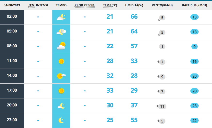 A Roma invece sarà una giornata bellissima e calda – ma non troppo – fin dall’inizio: neanche una nuvola, mai. Perfetta.