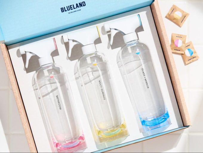 Vox ha raccontato come funzionano alcuni di questi esperimenti negli Stati Uniti, dove è piuttosto facile abbonarsi a servizi che consegnano regolarmente prodotti senz’acqua, in modo da abbandonare totalmente quelli confezionati nella plastica monouso. Blueland, per esempio, offre un kit con tre contenitori spray in vetro: uno per il bagno, uno per i vetri e gli specchi, uno per le altre superfici. Le istruzioni sono semplici: i contenitori si riempiono d’acqua del rubinetto, si aggiunge una pastiglia del prodotto e si aspetta qualche minuto. Si ottengono così tre prodotti che, a dire dell’azienda, puliscono meglio di quelli comuni e non contengono sostanze tossiche. Il kit iniziale costa 30 dollari, una singola pastiglia – che produce 0,6 litri di detergente – due dollari. Alden Wicker, il giornalista di Vox che l’ha provato per l’articolo, ne è rimasto entusiasta: Blueland però spedisce soltanto negli Stati Uniti.