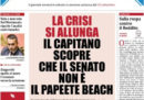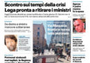 Il mancato accordo nella conferenza dei capigruppo al Senato e la decisione del presidente Casellati di convocare l’aula per oggi per decidere il calendario della discussione sulla mozione di sfiducia al presidente del Consiglio Conte presentata dalla Lega sono in apertura su tutti i giornali di oggi, che sottolineano la contrapposizione fra il centrodestra riunito da una parte e Movimento 5 Stelle e Partito Democratico dall’altra.