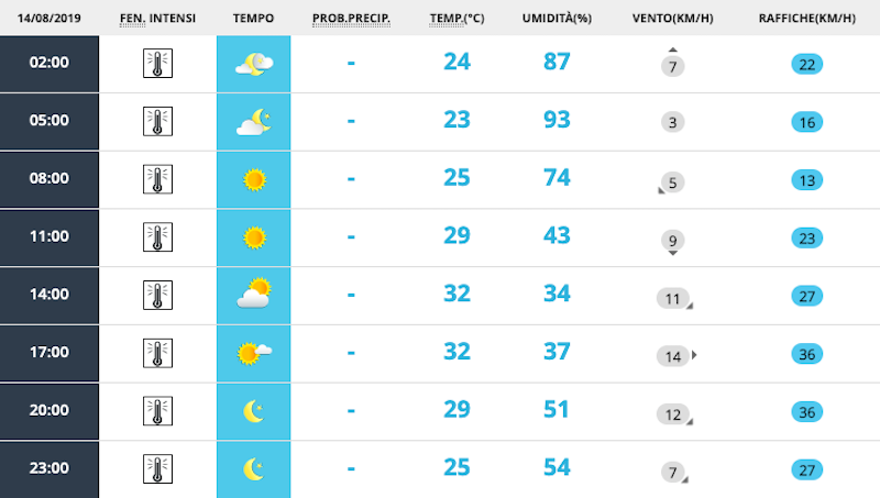 Le previsioni meteo per oggi, mercoledì 14 agosto