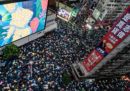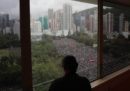 A Hong Kong è in corso la più grande manifestazione antigovernativa da settimane – stanno partecipando più di 100mila persone, secondo i giornali – e finora non ci sono stati scontri con la polizia. La manifestazione si sta svolgendo nel Victoria Park, perché la polizia non ha autorizzato un corteo nelle strade come richiesto dagli organizzatori, anche se gruppi di persone si sono radunati anche in altre zone nelle vicinanze. Per il gran numero di partecipanti le strade intorno al parco si sono a loro volta riempite di persone, e le autorità hanno dovuto chiudere le stazioni della metropolitana perché troppo affollate.