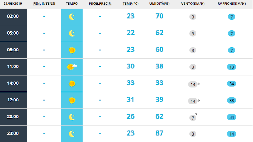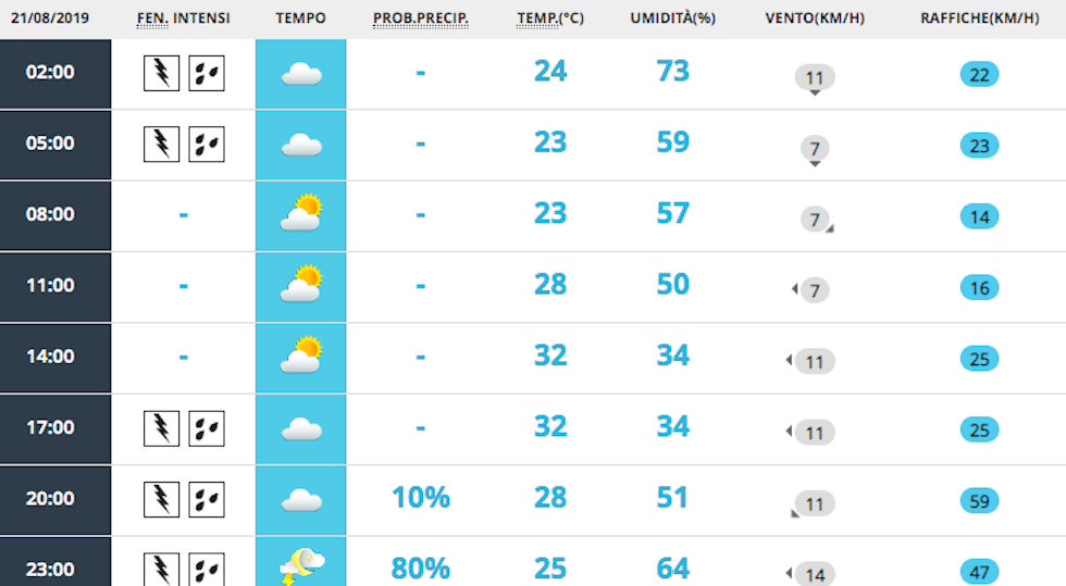Meteo: le previsioni per domani, mercoledì 21 agosto