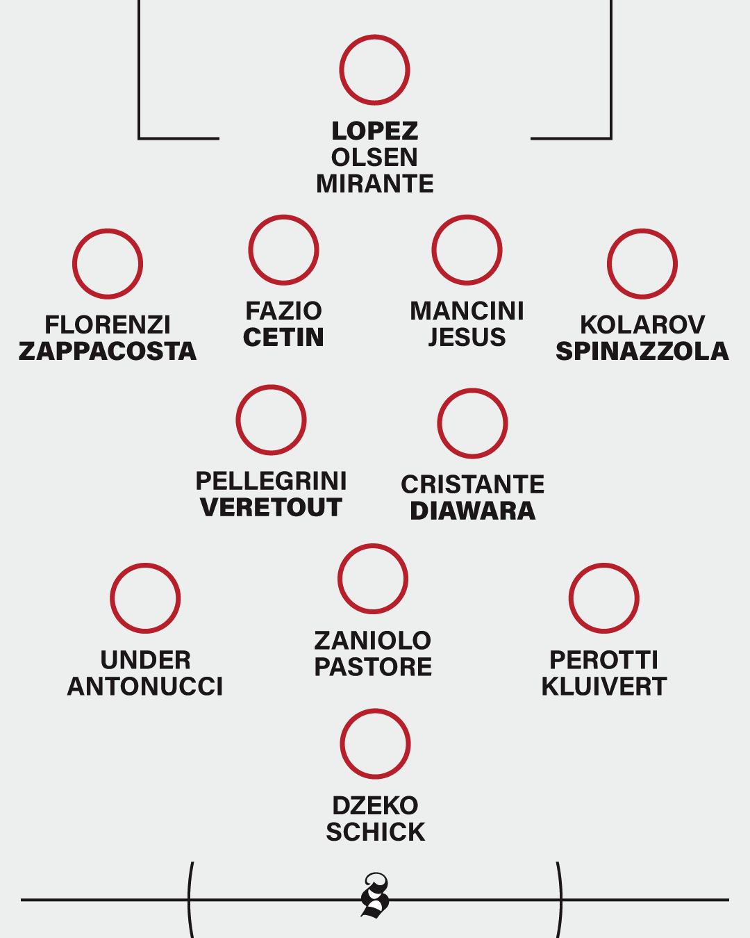C’è un nuovo portiere, lo spagnolo Pau Lopez, un nuovo esterno, Leonardo Spinazzola, e un nuovo centrale, Gianluca Mancini, molto promettente e più giovane del precedente titolare. Il centrocampo si è rinforzato con Amadou Diawara e Jordan Veretout, due giocatori che conoscono bene la Serie A e a Roma avranno la possibilità di esprimersi a un livello superiore. In attacco la società è riuscita a trattenere Edin Dzeko, un giocatore fondamentale per qualità ed esperienza, soprattutto in un reparto che l’anno scorso ebbe molte difficoltà.