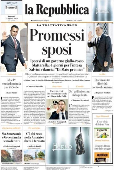 Le prime pagine di venerdì 23 agosto 2019