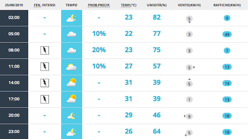 Potreste aver letto negli ultimi giorni minacciose previsioni di temporali per tutto il fine settimana, ma per domani, domenica 25 agosto, le previsioni del tempo non sono poi così male. La giornata inizierà soleggiata in tutta Italia e qualche temporale ci sarà solo nel pomeriggio, a ridosso delle Alpi in Trentino-Alto Adige e qua e là sugli Appennini. La pioggia dovrebbe smettere di cadere nel corso della giornata e la notte dovrebbe passare asciutta.