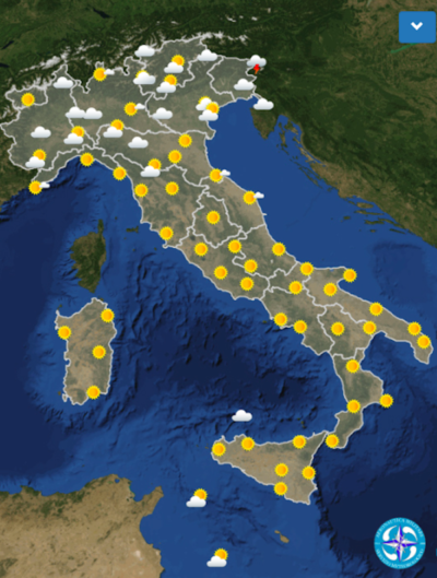 Per domani sono previste un po’ di nuvole mattutine su Alpi, Prealpi e Appennini, con un po’ di pioggia e qualche temporale qua e là e con un generale miglioramento nel pomeriggio. Nelle altre parti d’Italia è invece previsto un generale bel tempo, fatta eccezione per qualche possibile pioggia nel Centro Italia, tra la tarda mattinata e il primo pomeriggio.