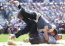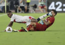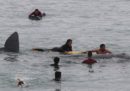 Con la fine di agosto ricominciano gli appuntamenti sportivi settimanali, come la Serie A, motivo per cui tra le foto notevoli degli ultimi giorni ci sono un momento della partita tra Roma e Genoa e il ritorno in campo dell’allenatore del Bologna Sinisa Mihajlovic, dopo aver passato gli ultimi quaranta giorni in cura per la leucemia. Poi valeva la pena fotografare ciclisti affaticati o romantici, fantine sul podio del dressage, surfisti che si interrompono per aiutare un capodoglio e tifosi che preferiscono un gelato al solito panino da stadio, ora che la stagione lo permette.