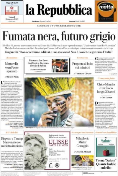 Le prime pagine di lunedì 26 agosto 2019