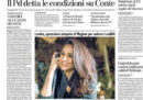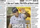 La crisi di governo apre tutte le prime pagine dei giornali di oggi, con modi anche molto diversi di raccontare la stessa cosa: per alcuni il PD “si è già messo a tavola”, per altri ha “calato le braghe”. Si parla di politica anche in termini più normali, comunque. Altro elemento molto presente sulle prime pagine, soprattutto sui giornali locali: è tornata la Serie A.