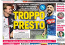 I titoli dei giornali di oggi tornano al pessimismo sulla formazione del nuovo governo dopo le dichiarazioni del leader del Movimento 5 Stelle Di Maio, che al termine dell’incontro con il presidente del Consiglio incaricato Conte ha chiesto che il programma del futuro governo sia quello presentato dal Movimento senza possibilità di trattativa, provocando la reazione risentita del Partito Democratico. I giornali sportivi titolano sulla causa presentata contro l’Inter dal suo centravanti Icardi e presentano la partita di stasera fra Juventus e Napoli.