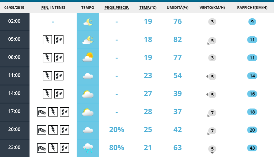 Meteo: le previsioni per giovedì 5 settembre