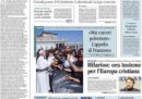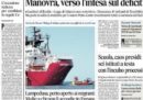 Diversi quotidiani aprono oggi con la decisione del governo italiano di rendere disponibile il porto di Lampedusa alla Ocean Viking, la nave di Medici Senza Frontiere in mare da una settimana con a bordo più di 80 migranti. I giornali di destra lo fanno a modo loro, parlando di nuova “pacchia” – un termine sgradevole e fuorviante usato da Matteo Salvini per descrivere le esperienze dei migranti che arrivano in Italia – e di “invasione dei neri”. Altrove trovano spazio le prime trattative sulla legge di bilancio, l’attacco coi droni in Arabia Saudita da parte dei ribelli Houthi, e la vittoria dell’Inter in Serie A.