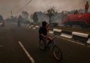 Da inizio settembre sulle isole di Sumatra e del Borneo, in Indonesia, ci sono stati quasi mille incendi: la maggior parte sono illegali, iniziati per ricavare terre per l’allevamento e l’agricoltura, soprattutto delle palme da olio. Il fuoco e il fumo hanno causato la cancellazione di voli, la chiusura di scuole, disagi al traffico e il peggioramento della qualità dell’aria. Fumi tossici sono arrivati fino alle vicine Singapore e Kuala Lumpur, la capitale della Malesia, tanto che il governo malese ha criticato l’Indonesia per non aver impedito gli incendi e ha chiesto che prenda provvedimenti. L’Indonesia ha intanto arrestato 200 persone in relazione agli incendi e ha dichiarato lo stato d’emergenza in sei province. Secondo il servizio meteorologico indonesiano la siccità che ha favorito gli incendi proseguirà anche a ottobre e la situazione potrebbe quindi peggiorare.