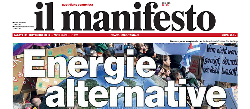 Ci sono notizie diverse in apertura sui giornali di oggi: molti titolano sulle manifestazioni per il clima che si sono svolte ieri in molte città del mondo, altri si occupano della manovra economica allo studio del governo, pubblicando ipotesi sulle misure che potrebbe contenere, altri ancora aprono sulla trattativa fra Movimento 5 Stelle e Partito Democratico per trovare un candidato comune per le elezioni regionali in Umbria. Il Sole 24 Ore e il Secolo XIX titolano sul piano di salvataggio di banca Carige approvato dall’assemblea dei soci, mentre i giornali sportivi presentano il derby di Milano di stasera fra Inter e Milan.