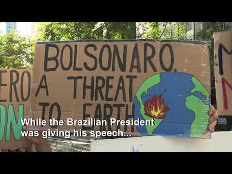Bolsonaro ha poi sostenuto che il suo governo sia uno di quelli più impegnati nella protezione del pianeta, anche se ci sono grandi preoccupazioni sul modo in cui sta gestendo la questione dell’Amazzonia: fin dalla campagna elettorale, Bolsonaro aveva promosso politiche e deregolamentazioni che hanno facilitato il processo della deforestazione dell’Amazzonia, in nome dello sviluppo economico. Dall’inizio del suo mandato ha ridotto le sanzioni, gli avvertimenti e i sequestri operati dalle autorità brasiliane verso le società coinvolte nella deforestazione illegale, facendo sì che la superficie di foresta distrutta mensilmente superasse nettamente i livelli degli anni precedenti.