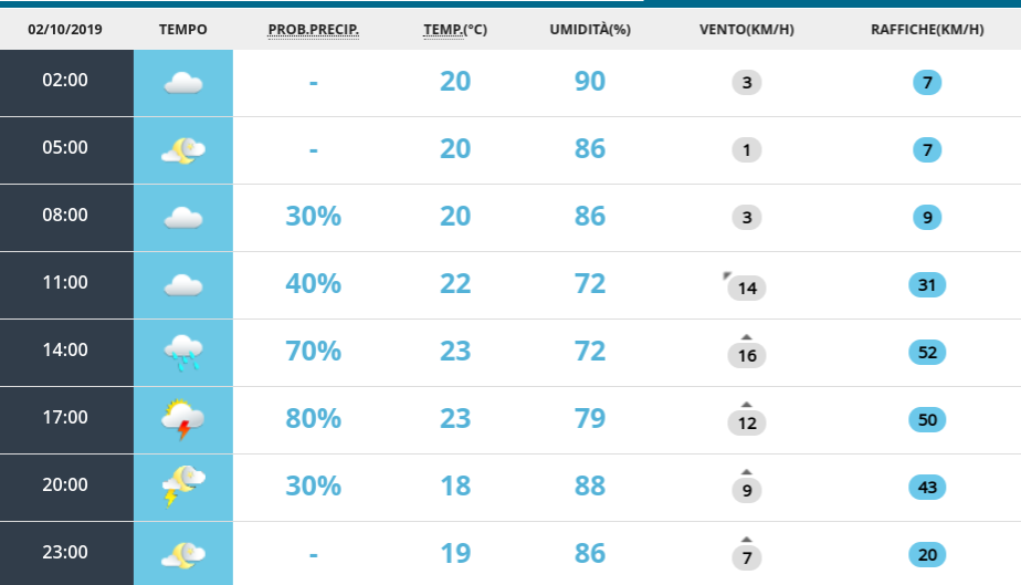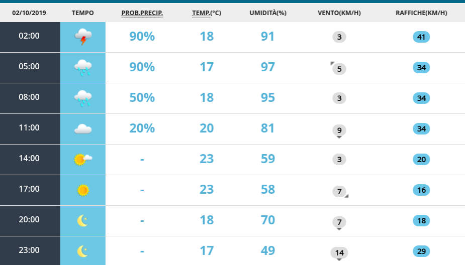 Le previsioni meteo per domani, mercoledì 2 ottobre