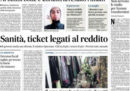 Ci sono notizie diverse in apertura sui giornali di oggi: molti titolano sulla misura allo studio da parte del governo per rendere i ticket sanitari proporzionali al reddito, mentre Repubblica si occupa degli scontri fra polizia e manifestanti a Hong Kong e la Stampa calcola quali potrebbero essere gli effetti della manovra economica sugli stipendi. Il Messaggero e il Tempo aprono sulle dimissioni del consiglio di amministrazione di AMA, l’azienda dei rifiuti di Roma, il Manifesto ricorda i migranti morti nel naufragio davanti a Lampedusa di sei anni fa, il Fatto indaga sui costi dell’aereo della presidenza del Consiglio, il Secolo XIX segue i lavori per la costruzione del nuovo ponte in sostituzione del ponte Morandi, e i giornali sportivi commentano la vittoria della Juventus contro il Bayer Leverkusen nella seconda giornata di Champions League.
