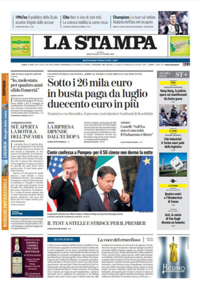Le prime pagine di mercoledì 2 ottobre 2019