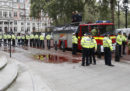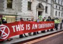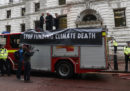 Quattro attivisti ambientalisti hanno spruzzato vernice rossa sull’edificio del ministero del Tesoro a Londra, usando un camion dei pompieri. Gli attivisti sono legati al movimento ambientalista Extinction Rebellion, quello che aveva organizzato le grandi manifestazioni della scorsa primavera in tantissime città del mondo (e a Londra in particolare). Sono arrivati questa mattina davanti all’edificio del ministero, nel centro della città, e hanno cominciato a spruzzare un liquido colorato di rosso usando una manichetta antincendio, di cui però molto presto hanno perso il controllo non riuscendo più a direzionare il getto.