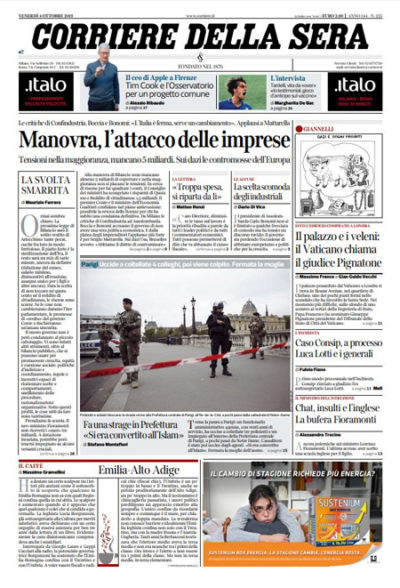 Le prime pagine di venerdì 4 ottobre 2019