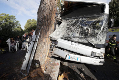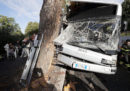 Mercoledì mattina, poco dopo le 9, un autobus della linea 301 si è schiantato contro un albero a Roma, all’incrocio tra via Cassia e via Oriolo, alla periferia nord della città: secondo Repubblica e Ansa ci sono 29 feriti, mentre il Messaggero riporta un bilancio ancora più alto, di 35. Tra di loro, alcuni sono gravi, seppur nessuno in pericolo di vita: cinque di loro sono stati ricoverati in codice rosso in diversi ospedali della città. Non è ancora chiara la dinamica dell’incidente: ATAC, l’azienda che gestisce i trasporti pubblici di Roma, ha detto di avere avviato un’indagine.