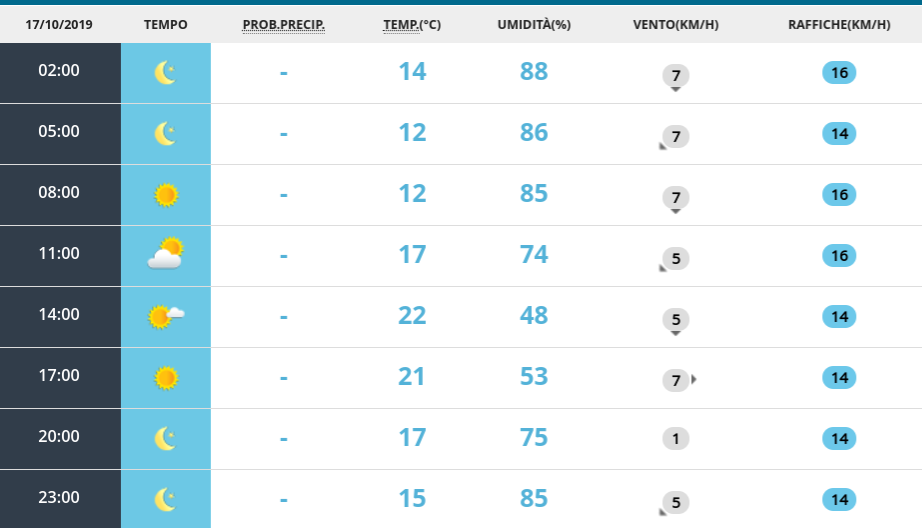 Le previsioni meteo per giovedì 17 ottobre