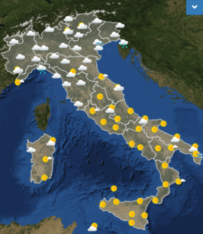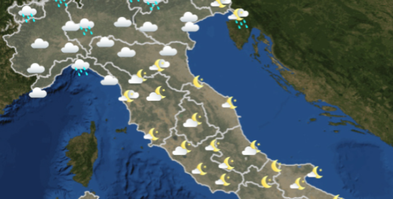 Venerdì inizierà con cieli nuvolosi in tutte le regioni del Nord e soleggiati in quelli del Centro e del Sud. Di mattina pioverà solo intorno a Genova e nella zona di Trieste. Di pomeriggio la situazione rimarrà più o meno simile, con pioggia anche a La Spezia, mentre di sera potrebbe peggiorare anche nel bellunese, in provincia di Brescia e nella zona di Alessandria. Infine, di notte, pioverà praticamente in tutto il Nord, mentre dalla pianura Padana in giù sarà sereno.