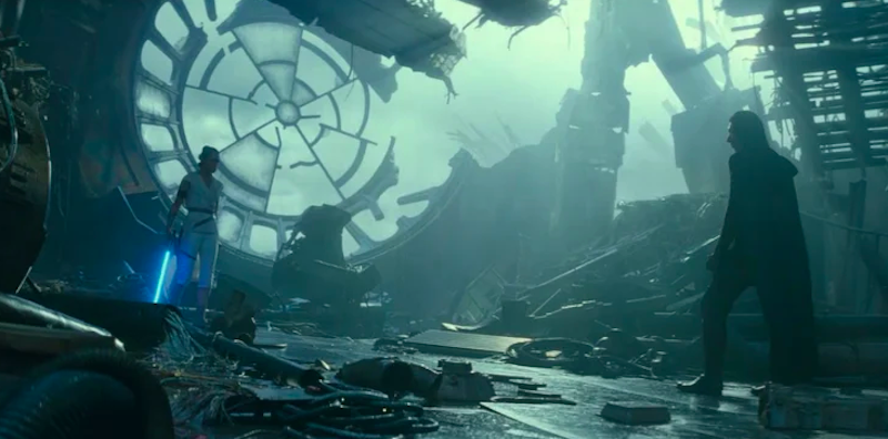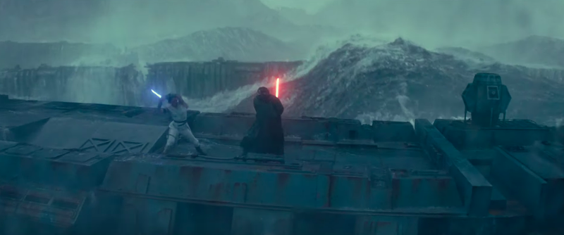 Poco dopo vediamo Rey e Kylo Ren combattere sopra le rovine di quella che sembra la seconda Morte Nera, l’enorme stazione spaziale costruita dall’Impero – gli antenati del Primo Ordine – nella vecchia trilogia, parzialmente distrutta alla fine del Ritorno dello Jedi. Il trailer sembra suggerirci che parte dei rottami della Morte Nera siano caduti nel mare di questo pianeta, ma non è chiaro se siano ancora utilizzabili.