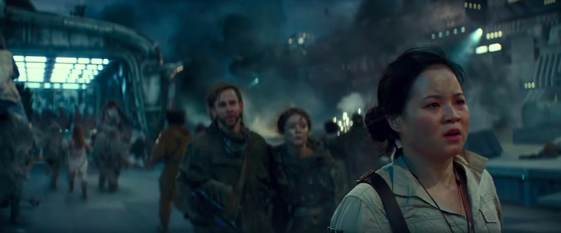 La Resistenza, come del resto in tutti i film della saga, non ha vita facile: in quasi tutte le scene viene mostrata sotto attacco. In uno spezzone particolarmente concitato si intravede uno dei pochi nuovi personaggi introdotti nel film: è l’attore Dominic Monaghan – Charlie in Lost, Merry nel Signore degli Anelli – che interpreta probabilmente un soldato della Resistenza.