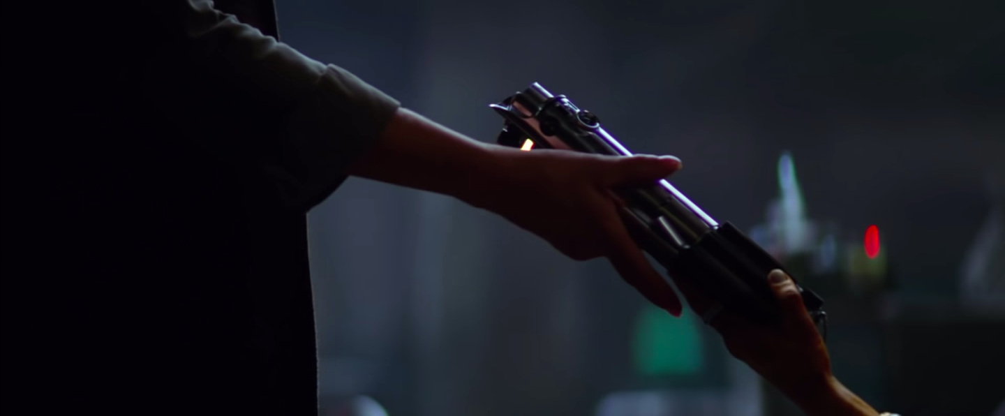 Abrams potrebbe aver deciso di utilizzare un’altra scena tagliata nel Risveglio della Forza che però si era intravista nei trailer: quella in cui Maz Kanata – il personaggio interpretato da Lupita Nyong’o – consegna la spada laser di Luke Skywalker nelle mani di Leia.