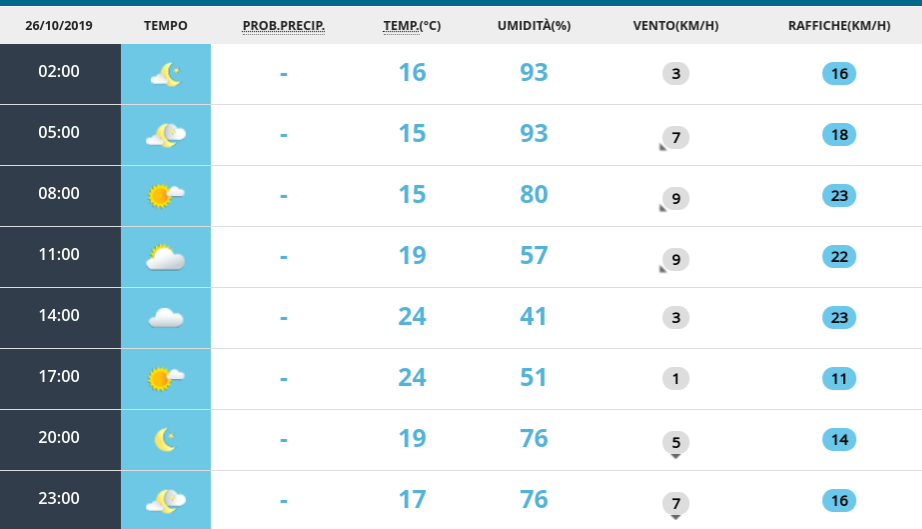 Meteo: le previsioni per domani sabato 26 ottobre
