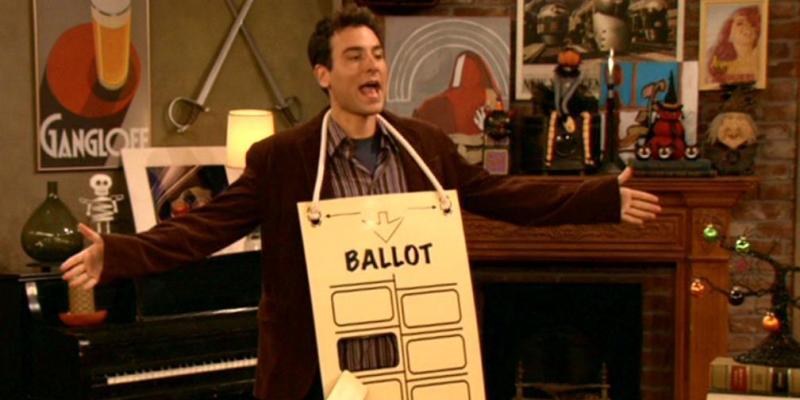 Per una versione più filologica e più artigianale, potete vestirvi da referendum, appendendo al collo una scheda elettorale fatta con un cartoncino che riporti le opzioni leave (con una crocetta sopra) e remain. Prendete spunto dal personaggio di Ted Mosby della serie tv How I Met Your Mother che in un episodio su Halloween si travestì da scheda elettorale, con riferimento a un riconteggio dei voti avvenuto nel 2000 per le elezioni presidenziali in Florida. Se optate per il cartoncino, comunque, preparatevi a dare qualche spiegazione, proprio come Ted Mosby.