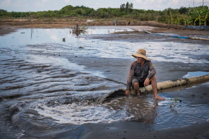 Un’acquacoltura di gamberi in allestimento nella provincia di Ben Tre, in Vietnam. (Linh Pham/Getty Images)