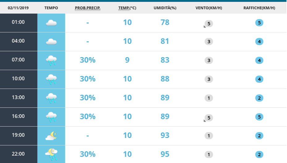 Le previsioni meteo per sabato 2 novembre