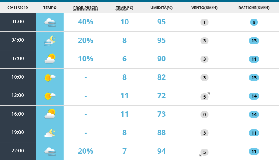 Le previsioni meteo per sabato dicono che il tempo non sarà dei migliori: la definizione più accurata scientificamente è “così così”. Di mattina è prevista pioggia nel Nord-Est e neve sul versante occidentale del Trentino-Alto Adige (la prima della stagione?), poi di pomeriggio ci saranno schiarite al Nord e peggioramenti nel Centro e nel Sud: dovrebbe piovere in Toscana, nel Lazio, in Abruzzo, in Campania, in Basilicata, in Calabria e in Sicilia. Di sera si aggiungerà all’elenco anche la Puglia, ma nel frattempo migliorerà in Sicilia, Abruzzo e Toscana, con ulteriori schiarite anche di notte.