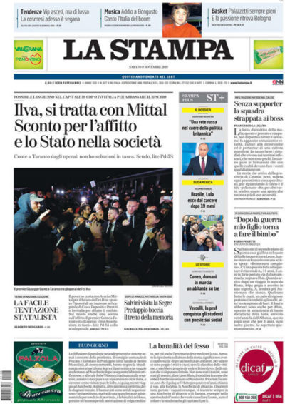 I titoli di apertura di tutti i giornali di oggi sono dedicati alla vicenda dell’ILVA, con le ipotesi sulle proposte del governo nella trattativa per far rimanere ArcelorMittal, sulle quali però non c’è nessun accordo nella maggioranza, e la visita del presidente del Consiglio Conte alla fabbrica in sciopero a Taranto per parlare con gli operai, pur non avendo nessuna soluzione da proporre.