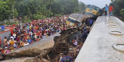 Almeno 15 persone sono morte nello scontro tra due treni in Bangladesh