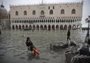Martedì notte a Venezia l’acqua alta ha raggiunto i 187 centimetri, avvicinandosi ai livelli di quella più alta mai registrata: 194 centimetri, durante l’alluvione del 1966. La marea si è poi progressivamente abbassata, ma come previsto dal Centro Previsioni e Segnalazioni Maree della città mercoledì mattina alle 10.30 circa c’è stato un nuovo picco di marea di 160 centimetri. Il comune di Venezia ha ordinato la chiusura di tutte le scuole del centro storico, delle isole della laguna, del Lido e di Pellestrina e ha annunciato di voler chiedere lo stato di crisi. Un uomo è morto a Pellestrina, in casa sua, a causa di un corto circuito. A seguire trovate le foto scattate mercoledì che mostrano la situazione in città, comprese alcune immagini della basilica di San Marco, dove si è allagata la cripta e l’acqua ha superato il metro di altezza.