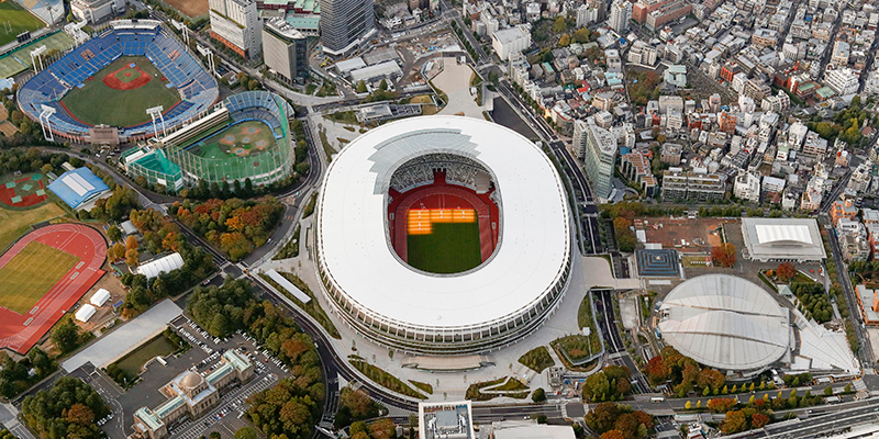Sono finiti i lavori di costruzione dello Stadio Nazionale di Tokyo, in Giappone, che ospiterà i più importanti eventi delle Olimpiadi del 2020. Restano da fare solo i controlli finali di qualità e sicurezza, prima che lo stadio sia ufficialmente inaugurato il 21 dicembre. I lavori erano iniziati nel dicembre 2016, dopo che un precedente progetto di Zaha Hadid era stato scartato per via dei costi eccessivi. Lo stadio è uno degli otto impianti principali delle prossime Olimpiadi, che si terranno dal 24 luglio al 9 agosto 2020.