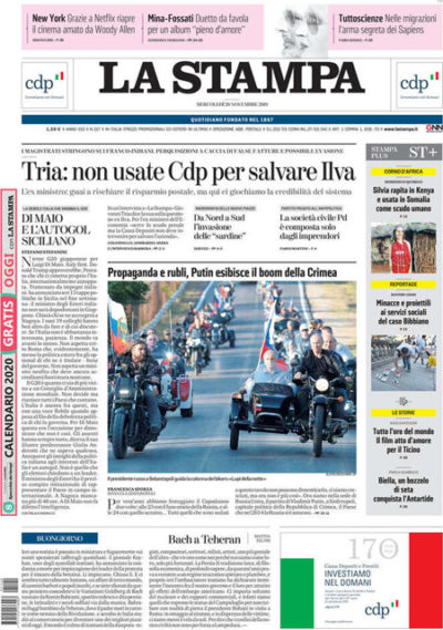 Ci sono notizie diverse in apertura sui giornali di oggi: alcuni seguono la trattativa per il salvataggio dell’ILVA e le perquisizioni effettuate ieri dalla Guardia di finanza nelle sedi della società, altri si occupano delle critiche del Movimento 5 Stelle alle modifiche al fondo “salva stati” dell’Unione Europea. Avvenire segue le proteste di Hong Kong, il Manifesto apre sulla posizione del Partito Democratico sulla legge di bilancio, il Fatto e la Verità titolano sulle indagini sui finanziamenti ad associazioni vicine a Matteo Renzi, e il Messaggero si occupa del salvataggio di Alitalia.
