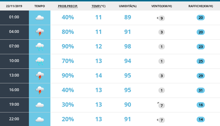 Le previsioni meteo per venerdì 22 novembre