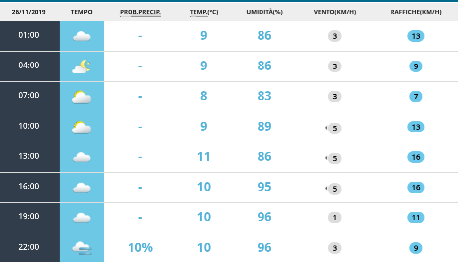La notizia della settimana è che martedì dovrebbero attenuarsi le piogge, che fino a lunedì sono state sparse e intense soprattutto in Piemonte e Liguria. Martedì mattina, invece, è prevista pioggia isolata solamente in provincia di Messina, ma smetterà presto: di pomeriggio non pioverà da nessuna parte, così come anche di sera. Di notte, infine, potrebbe piovere nei dintorni di Milano e nel verbanese.