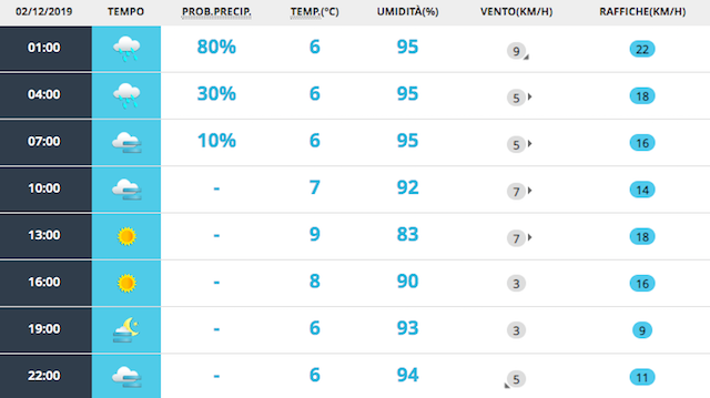 Le previsioni meteo per lunedì 2 dicembre
