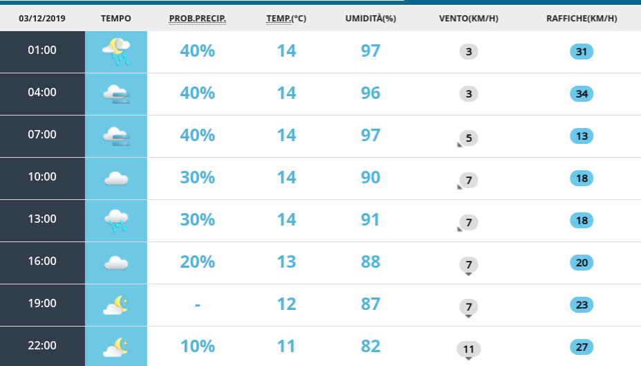 A Roma martedì ci sarà una giornata bruttina, con alte probabilità di pioggia durante tutta la mattinata, mentre verso sera le probabilità dovrebbero scendere. Comunque, anche se non pioverà sarà sicuramente nuvoloso.