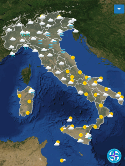 Per la giornata di domani, lunedì 16 dicembre, il Servizio meteorologico dell’Aeronautica Militare prevede maltempo sulle regioni del Nord dalla mattina alla sera, con nebbia in Pianura Padana e piogge diffuse da est a ovest. Nel Centro Italia la giornata sarà perlopiù nuvolosa ma senza piogge e con qualche schiarita, mentre al Sud e sulle isole è previsto tutto sommato bel tempo. Le temperature sono date in netto calo lungo le Alpi, stazionarie al Centro e in aumento tra Sud e isole.