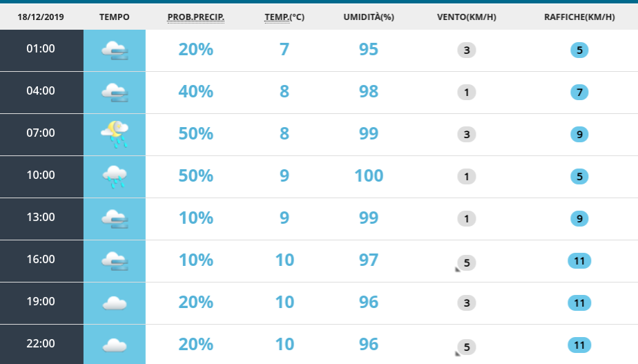 Meteo: le previsioni per mercoledì 18 dicembre